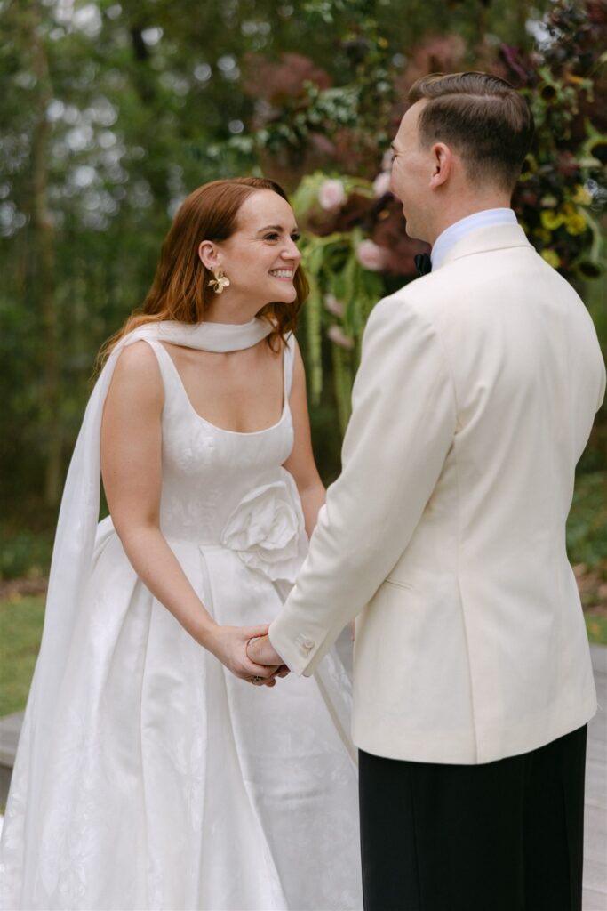Jade and Anthony’s wedding is a clear example of what holistic floral and event design looks like in practice. It is not floristry in isolation, and it is not styling layered on top of floristry. It is a single design conversation that moves from the fabric of the dress to the last zinnia on the reception table, with every decision in service of the same vision.
